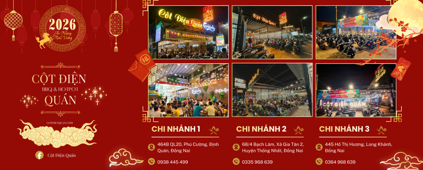 Quán chuyên về các món nướng BBQ đa dạng và đặc biệt nổi tiếng với món lẩu sườn bò – sự kết hợp hoàn hảo giữa nước dùng đậm đà, sườn bò mềm thơm và các loại rau tươi ngon. Với không gian rộng rãi, ấm cúng, và phong cách phục vụ tận tình, Cột Điện Quán không chỉ là nơi thưởng thức ẩm thực mà còn là địa điểm lý tưởng cho những buổi gặp gỡ gia đình, bạn bè. Đến đây, bạn sẽ được trải nghiệm những hương vị khó quên cùng không khí sôi động, thân thiện.